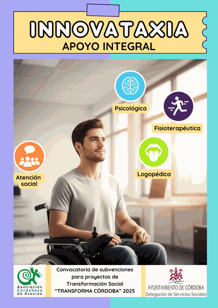 Anunciamos el nuevo proyecto de la Asociación Cordobesa de Ataxias (ACODA) «INNOVATAXIA: apoyo integral». Un espacio de apoyo para las personas afectadas con Ataxias y sus familias, donde recibirán ayuda en áreas muy importantes para sus vidas.