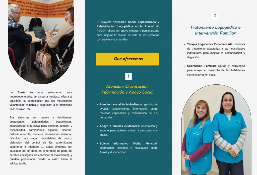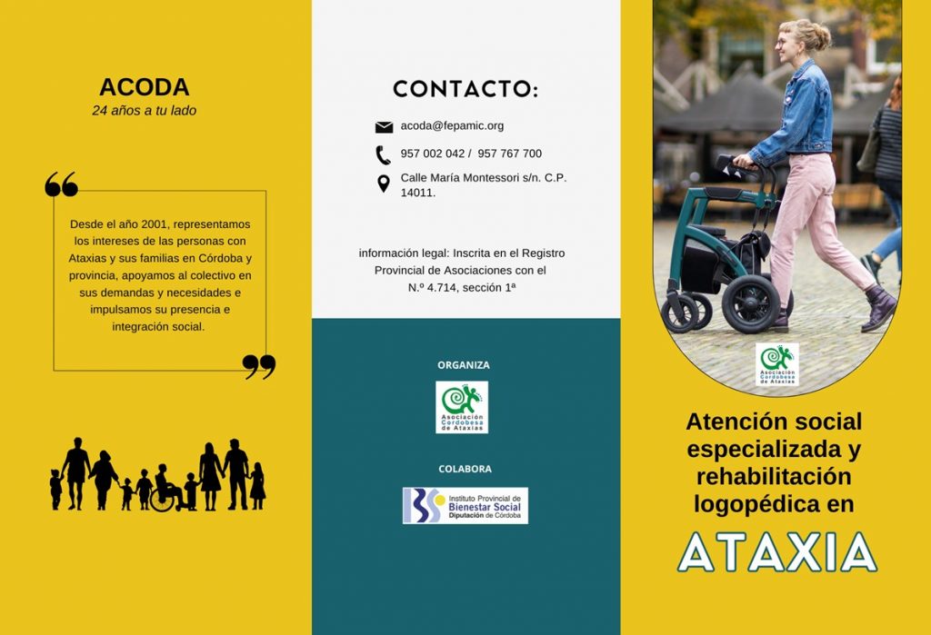 Con el fin de contribuir a alcanzar mayores niveles de la calidad de vida de las personas afectadas por distintos tipos de ataxias y sus familias, residentes en Córdoba y provincia, desde la Asociación Cordobesa de Ataxias, estamos desarrollando el programa “Atención social especializada y rehabilitación logopédica en Ataxia”.